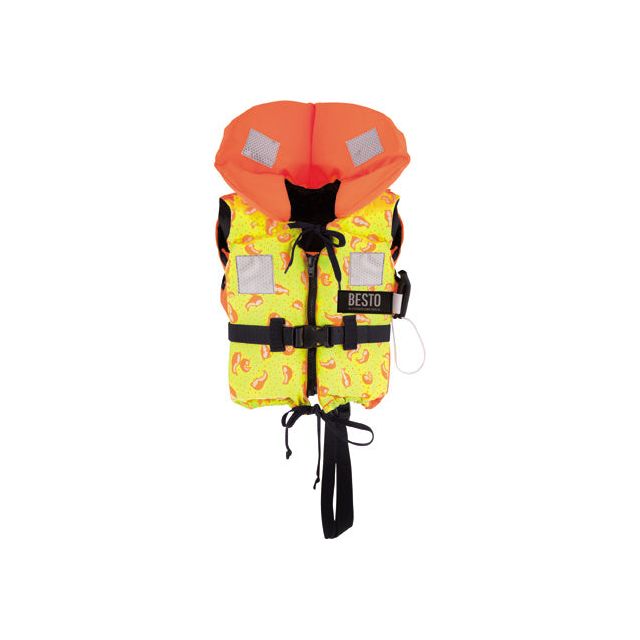 • De oranje Baby en Toddler vesten zijn voorzien van Pinguïn Design.