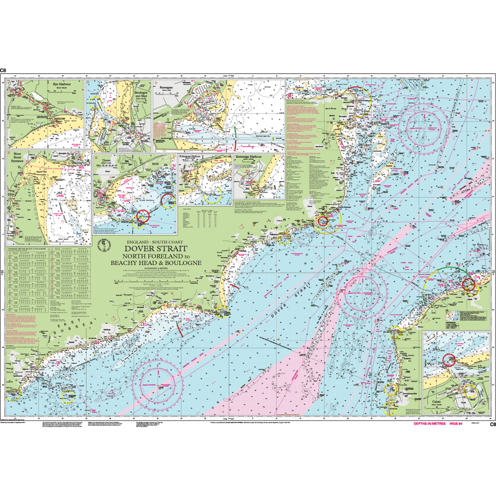 De Imray Chart C9 vouwkaart van de Britse kaartenmaker Imray bestrijkt de verbinding van Beachy Head baken bij Eastbourne naar het Isle of Wight. De maart 2022 editie van de C9 is gecorrigeerd. In deze editie is de specificatie van de kaart verbeterd om gekleurde lichtflitsen weer te geven. De dieptes zijn bijgewerkt aan de hand van de laatste peilingen en de voltooide werkzaamheden in het windmolenpark Rampion zijn aangegeven. Alle kaarten zijn gedrukt op stevig en watervast papier. De nautische kaart meet 787 x 1118 cm en de schaal is 1 : 110.000.