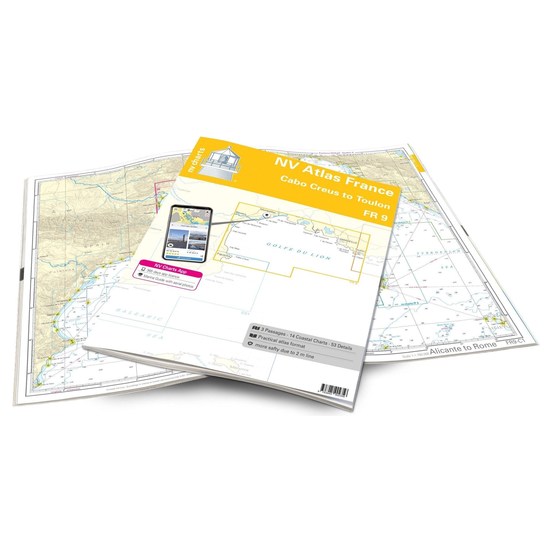 Aan de Franse kant staat de havenstad Sète ongeveer 30 km ten zuidwesten van Montpellier bekend als Klein Venetië. In het algemeen zijn er verschillende grote havens zoals Port Camargue Port-St-Louis-du-Rhône Port de Martigues en Port Carry le Rouet tot u het historische Marseille bereikt. Daar wordt een aanlegplaats in de Vieux Port van Marseille aanbevolen aangezien deze haven al in de oudheid bestond. Ook een bezoek aan de Frioulen-eilanden voor de kust van Marseille is de moeite waard. Een tussenstop waard is het charmante Cassis dat uitnodigt om uit te rusten met de Calanque de Port Miou een uitkijkpunt boven de kleine haven.Dankzij de overzichtelijke indeling kan de sportschipper snel invalswegen havens en ankerplaatsen vinden en wordt hij gewezen op navigatief belangrijke details die ook in de NV Charts-app staan. De serie kaarten overtuigt door zijn optimale schalen en uitgebalanceerde bladgedeelten.